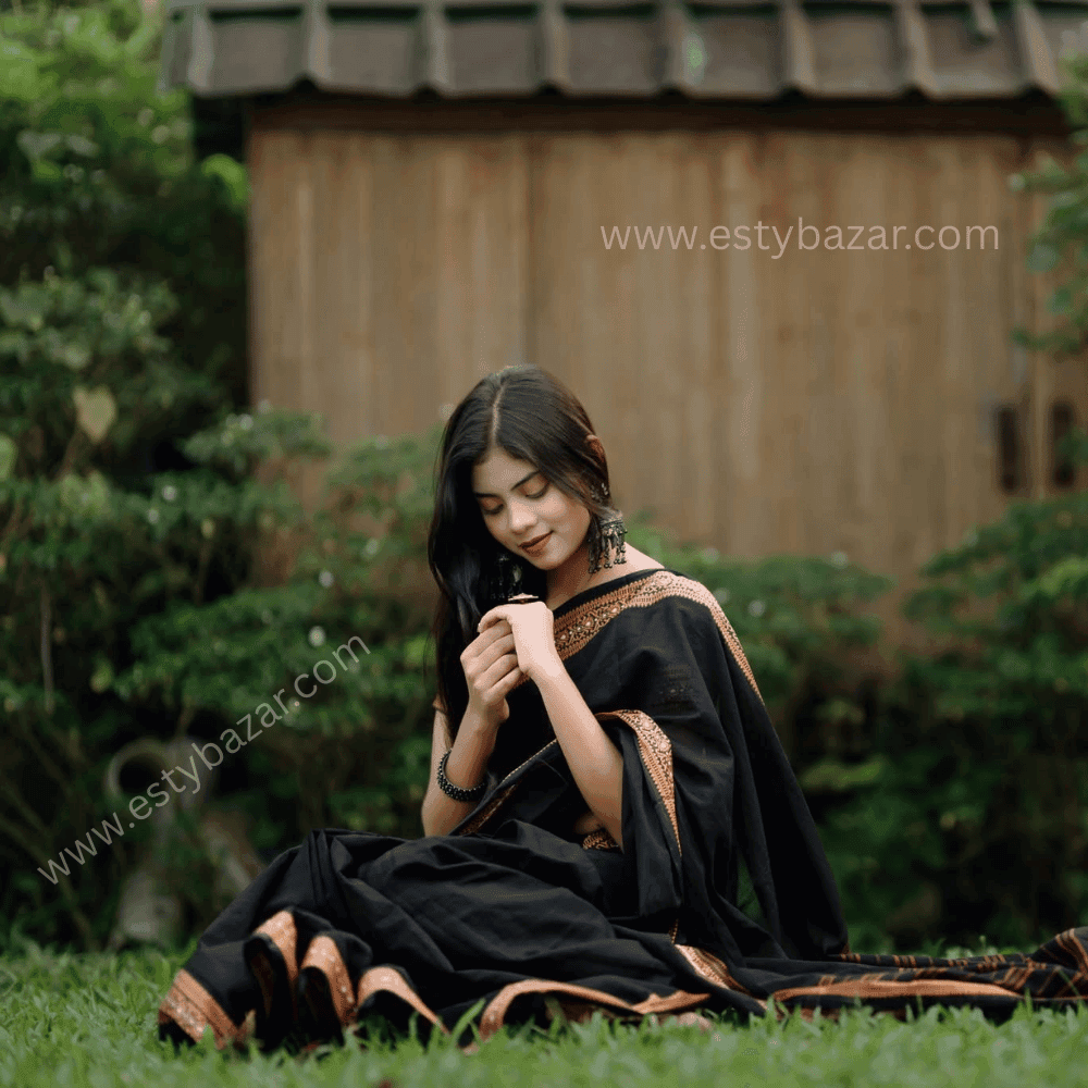 Aarong Cotton Saree: Pure Cotton Serenity in Black – 13.5 Hat