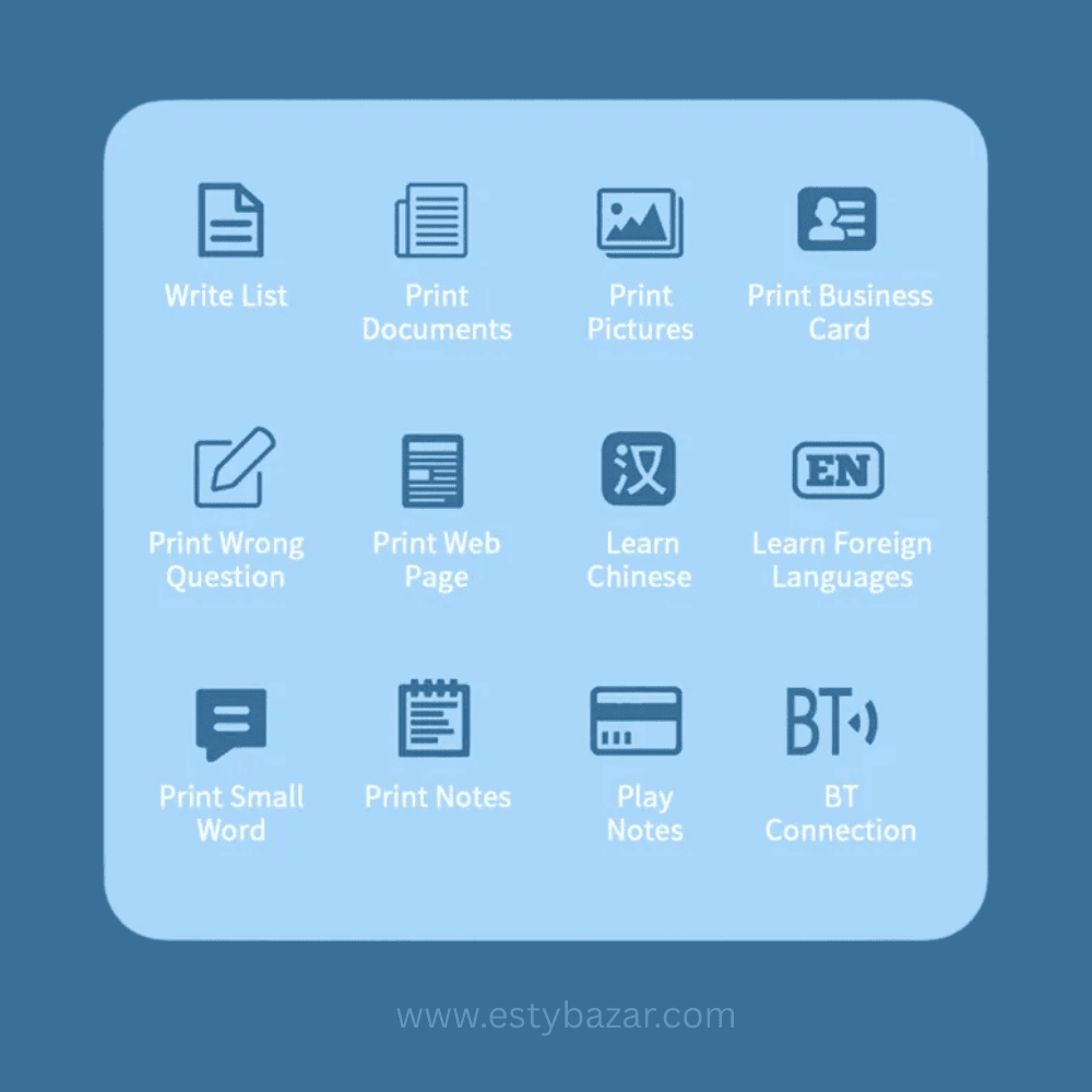 আপনার সৃজনশীলতা এবং উৎপাদনশীলতা বাড়াতে নিয়ে এসেছি Mini Thermal Printer! এই অসাধারণ পোর্টেবল প্রিন্টারটি আপনার জীবনকে আরও সহজ করে তুলবে। এর ওয়্যারলেস ব্লুটুথ সংযোগের মাধ্যমে আপনি মুহূর্তেই ছবি, লেবেল, মেমো, এমনকি ভুল প্রশ্নও প্রিন্ট করতে পারবেন, কোনো রকম কালির ঝামেলা ছাড়াই।